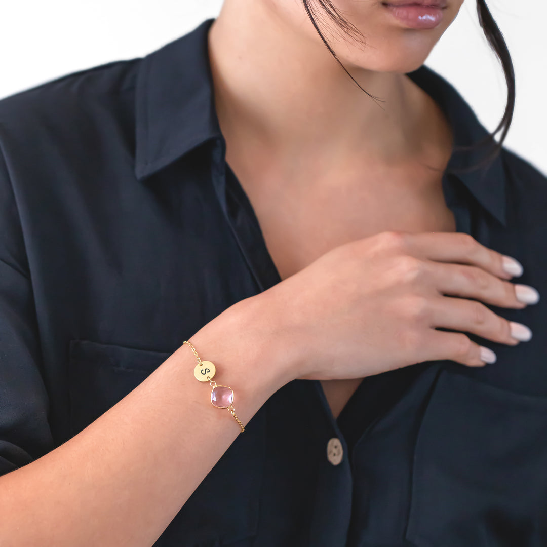 Birthstone & Initial Bracelet – Dainty Personalized Jewelry