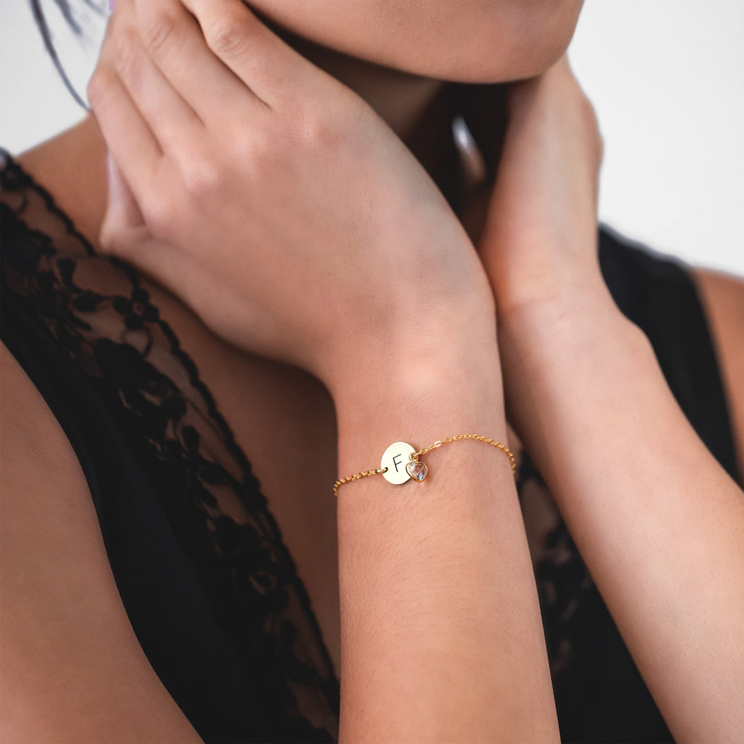 Birthstone Initial Disc Bracelet – Personalized Minimal Jewelry