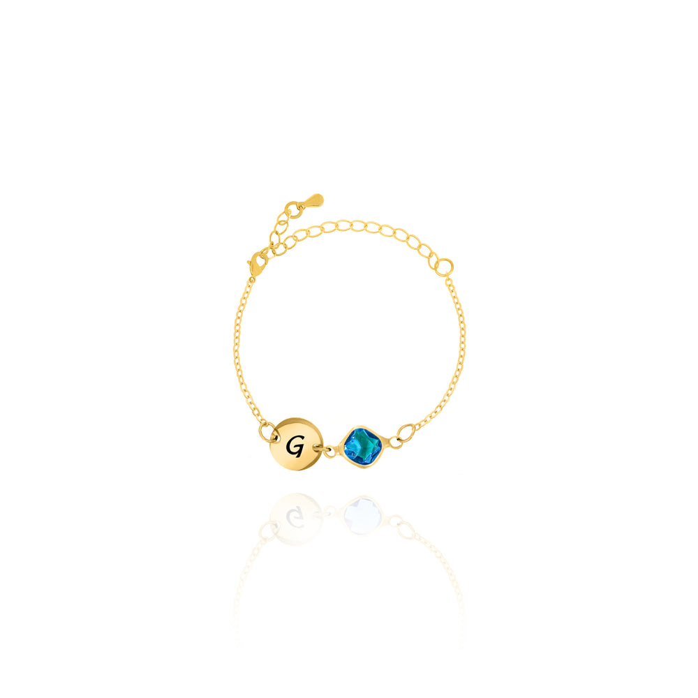Personalized Birthstone Initial Bracelet – Dainty Disc Charm