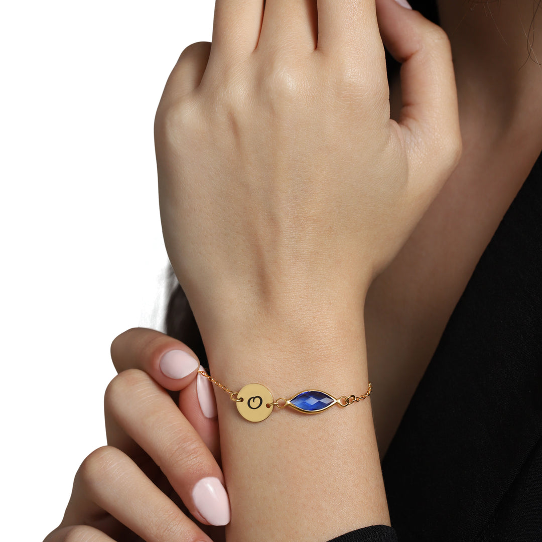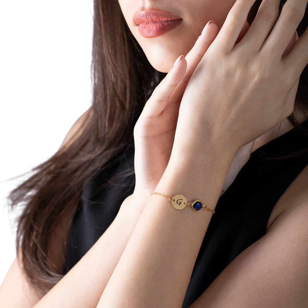Personalized Birthstone Initial Bracelet – Custom Disc Jewelry