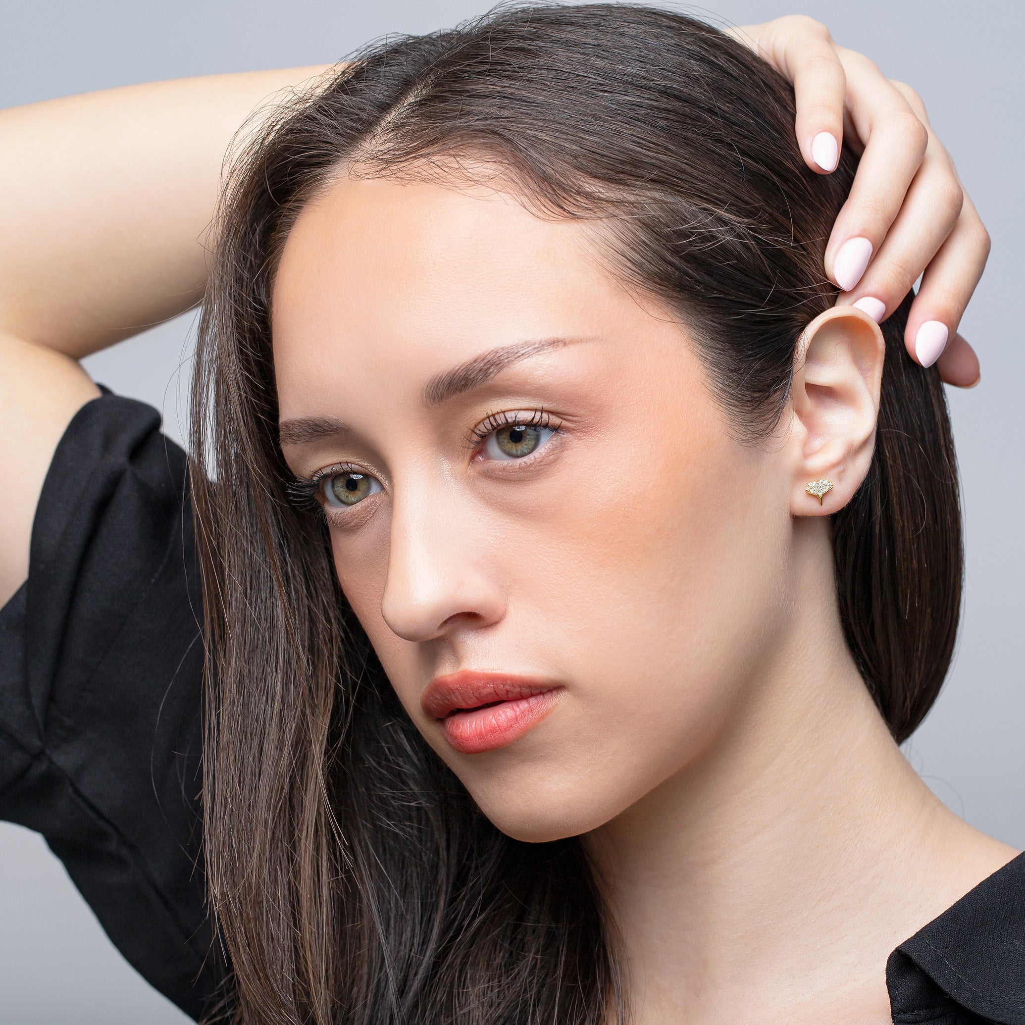 Dainty Whale Tail Stud Earrings with Crystals- S061