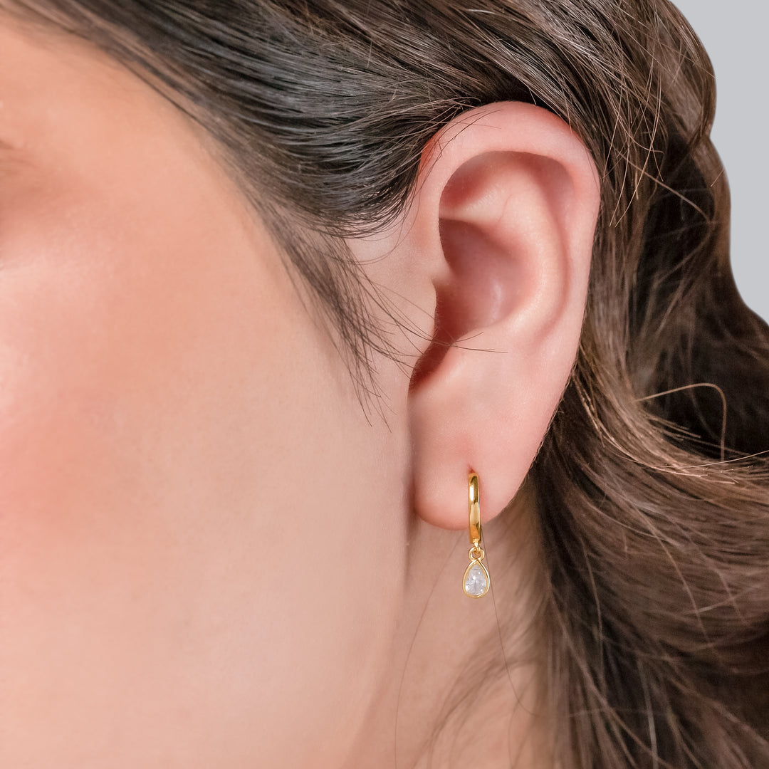 Dainty CZ Huggie Hoop Earrings – Minimalist Sparkle for Everyday Stacks -S050