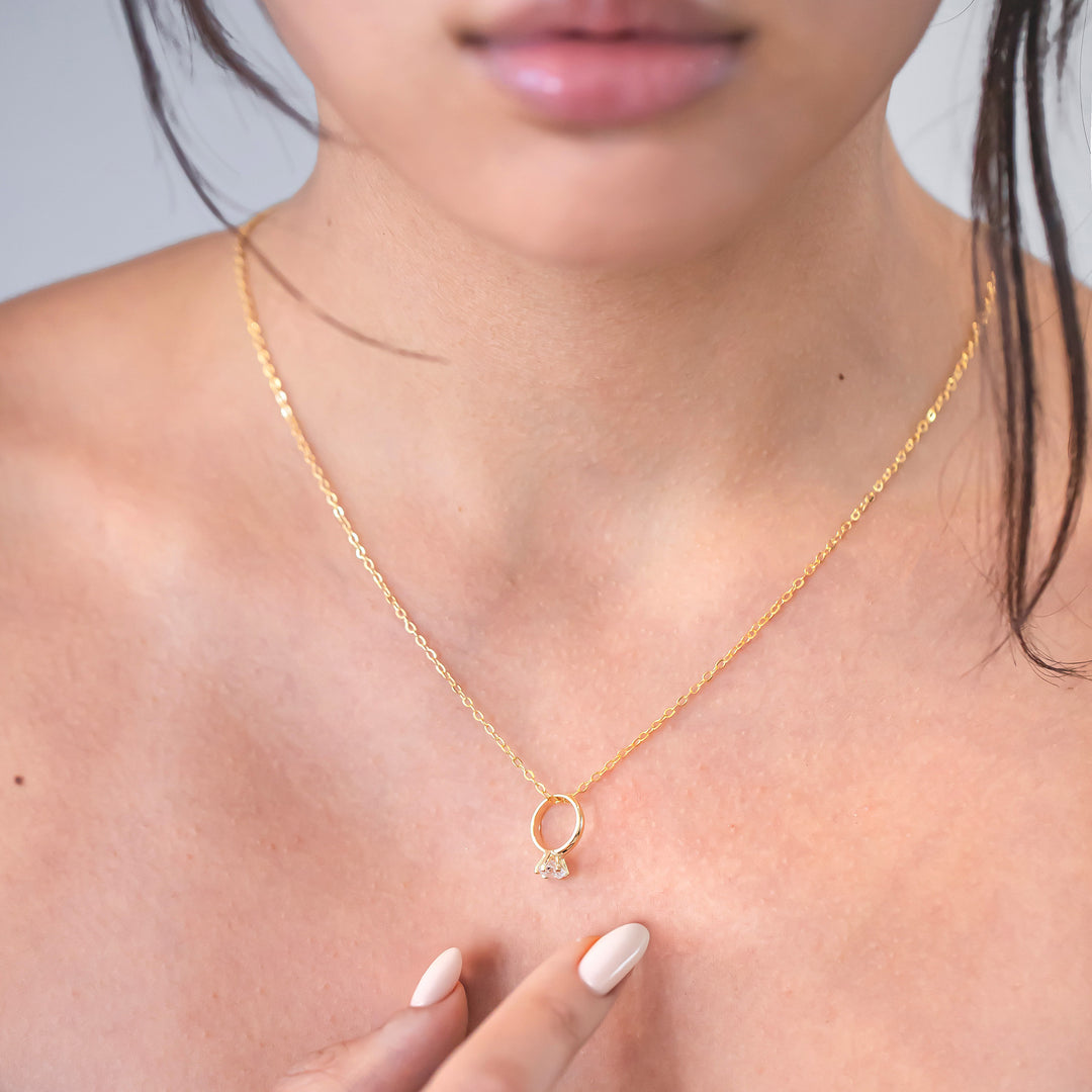 Mini Engagement Ring Necklace – Dainty Proposal Jewelry Gift for Her