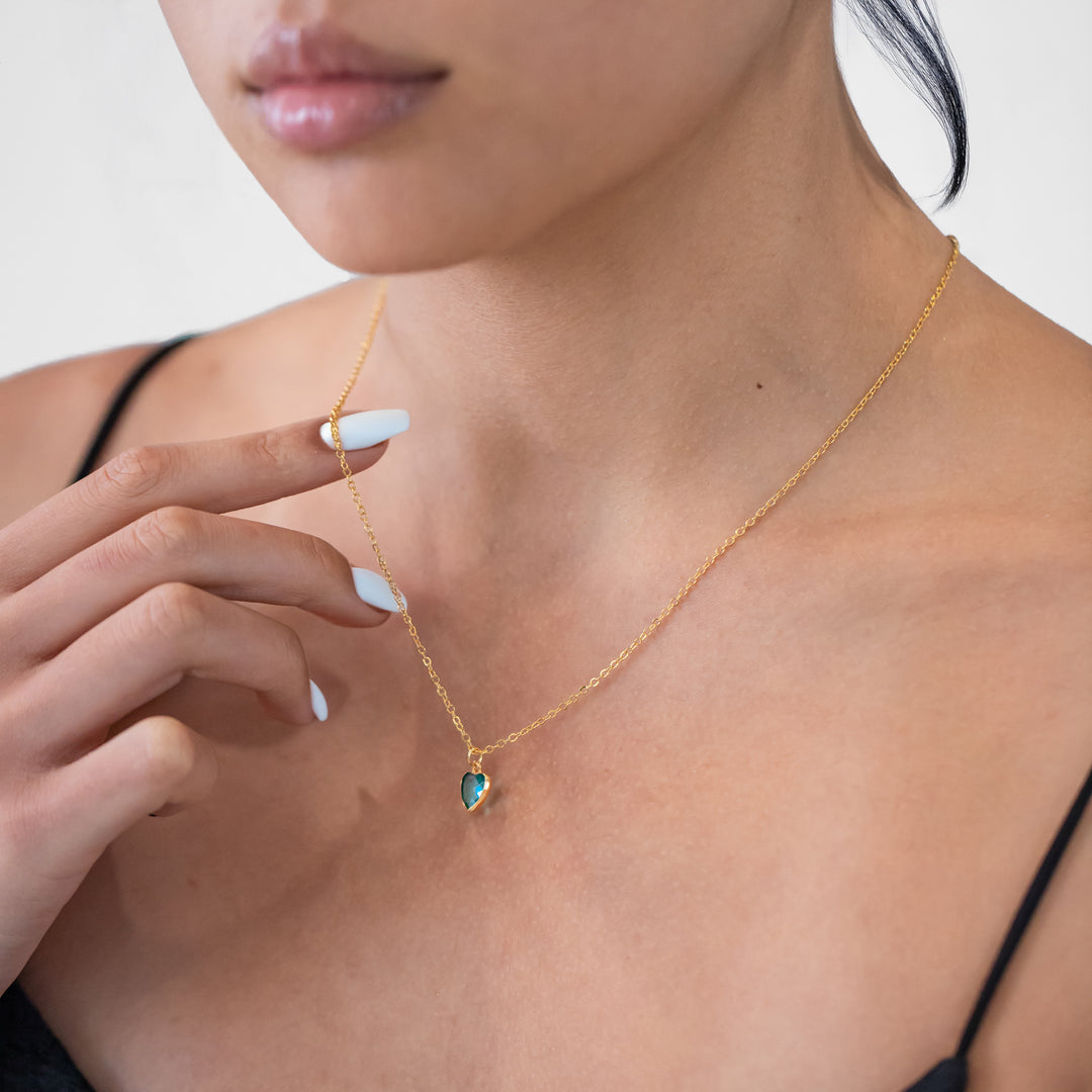 Heart Birthstone Necklace in Gold, Silver, or Rose Gold