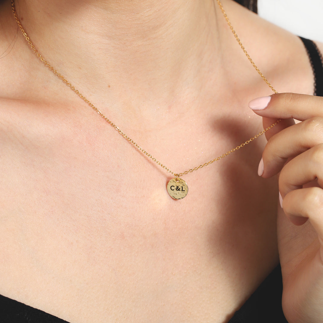 Personalized Hammered Disc Necklace – Custom Initial