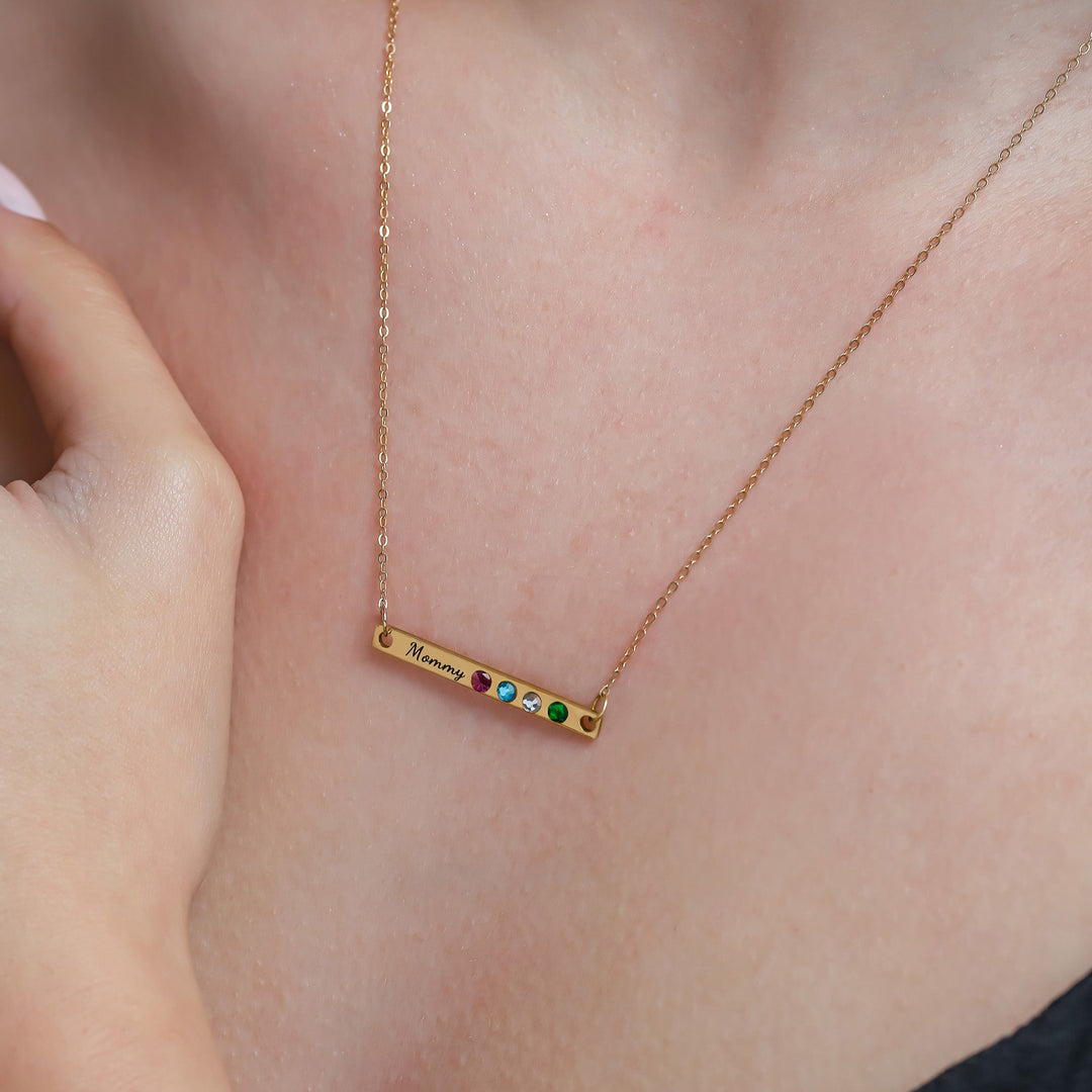 Personalized Engraved Bar Necklace with Birthstones