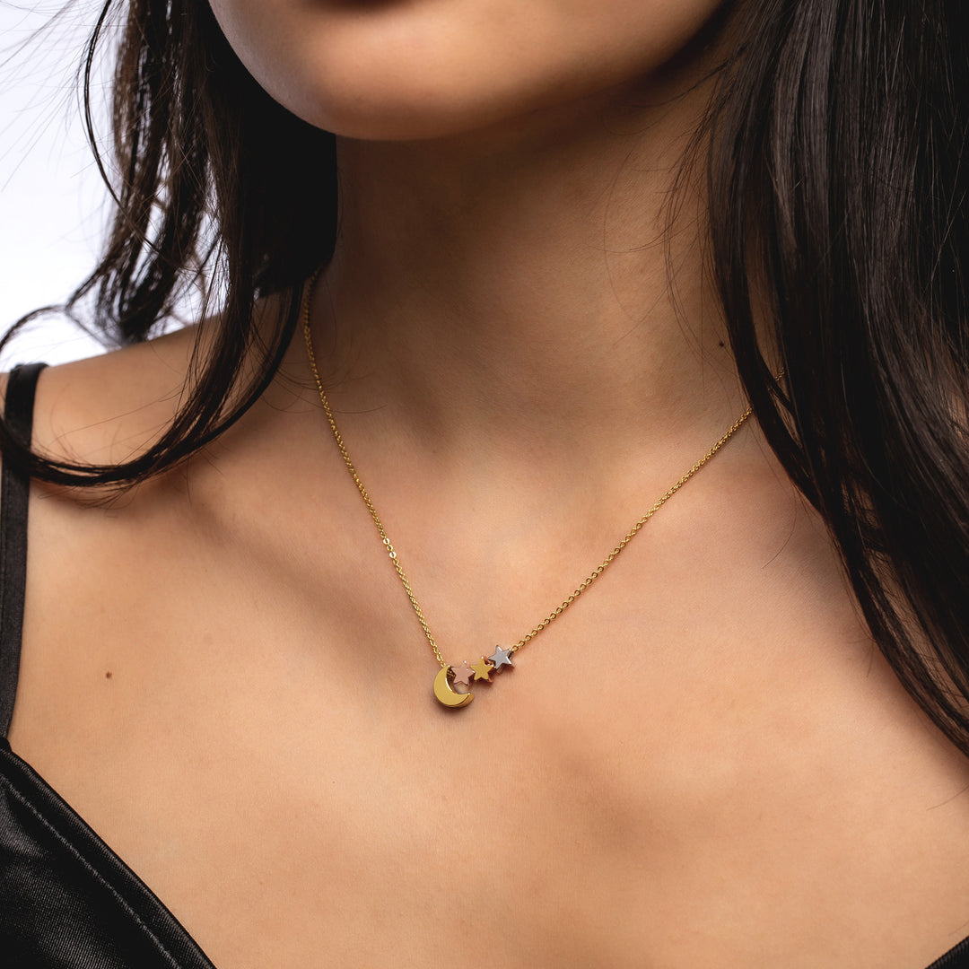 Moon and Star Necklace in Sterling Silver