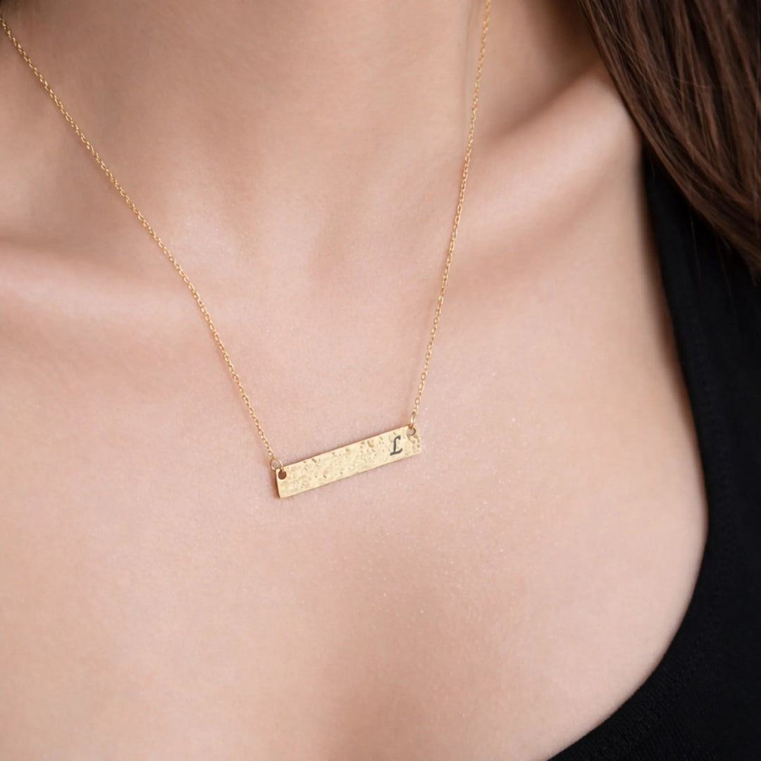 Personalized Hammered Bar Necklace – Custom Silver Name Necklace for Her